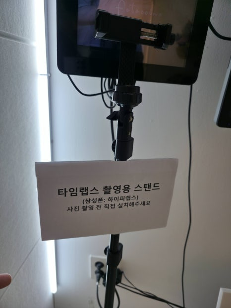 또한 타임랩스용 촬영용 스탠드가 기본 세팅되어 있는데 개인 핸드폰으로 촬영해 봤어요