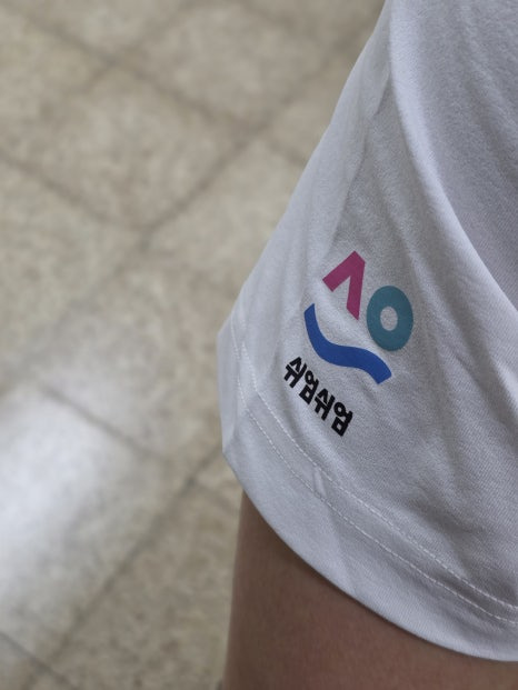 블랙야크 티셔츠에는 쉬엄쉬엄 로고가 작게 들어가 있어요