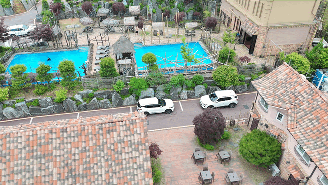 이제 밖으로 나가면 거대한 수영장풀이 무려 2개나 존재해요!