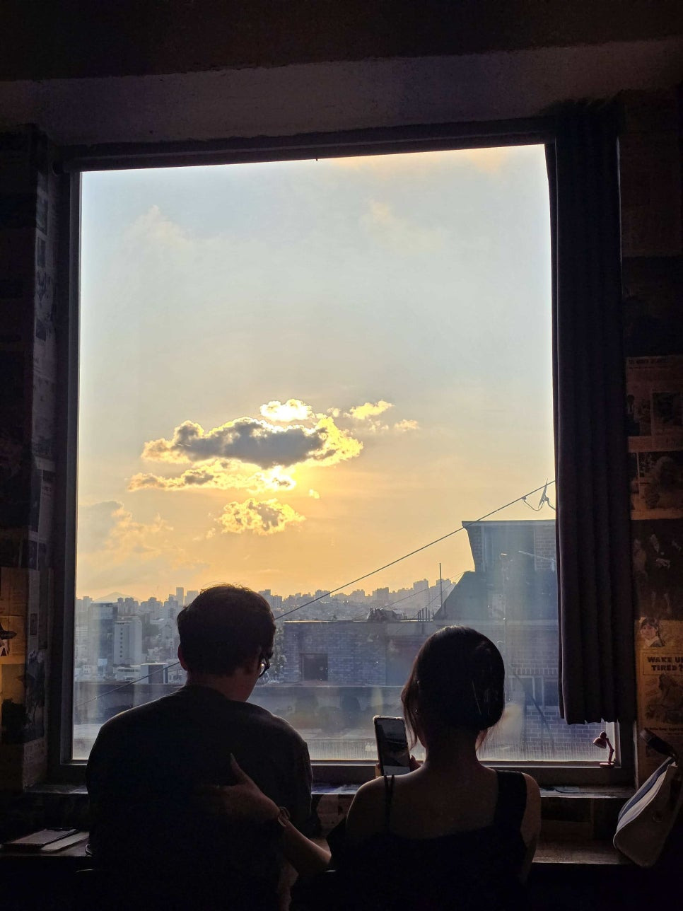 서울 시내 풍경이 한눈에 들어오고, 해가 지기 시작하니까 분위기가 말도 안 되게 예뻐지더라고요.