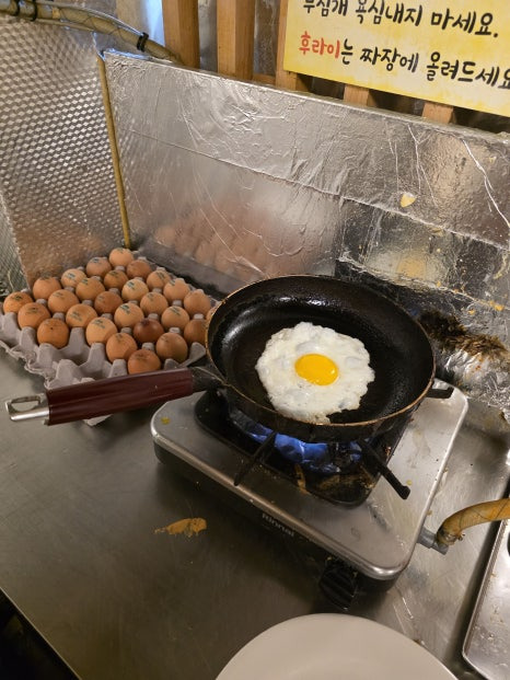 김치전이랑 계란후라이를 직접 부쳐 먹을 수 있는데, 이게 은근 재미있더라고요 😆