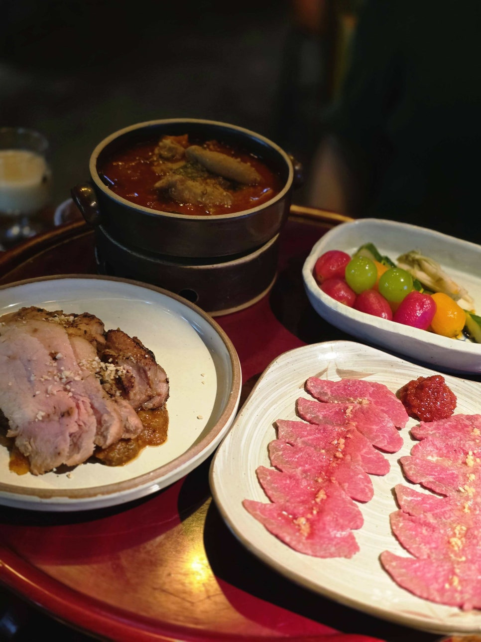 한우내장찜 + 한우육사사미 + 수비드 된장맥적 + 토마토절임