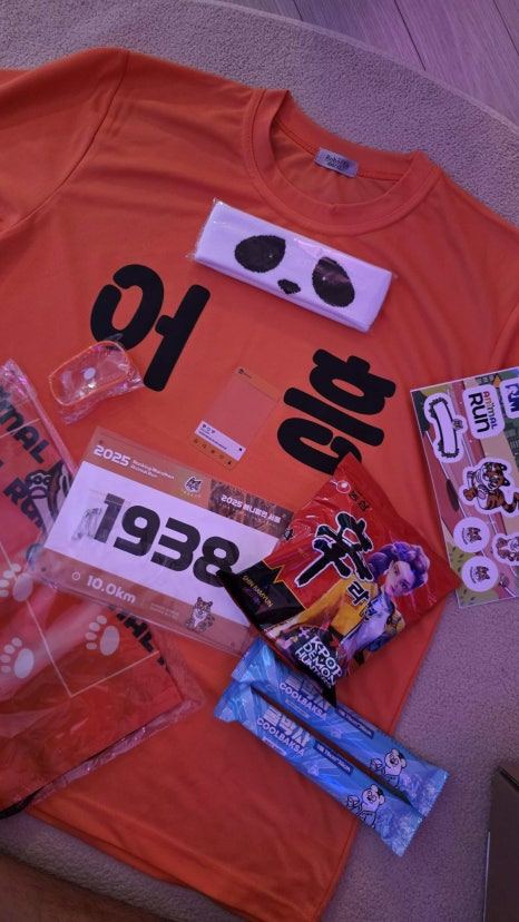 달리는 내내 호랑이 캐릭터가 포인트였는데, 참가 티셔츠랑 굿즈 퀄리티가 꽤 좋아서 운동할 때 계속 쓸 수 있을 것 같아요.