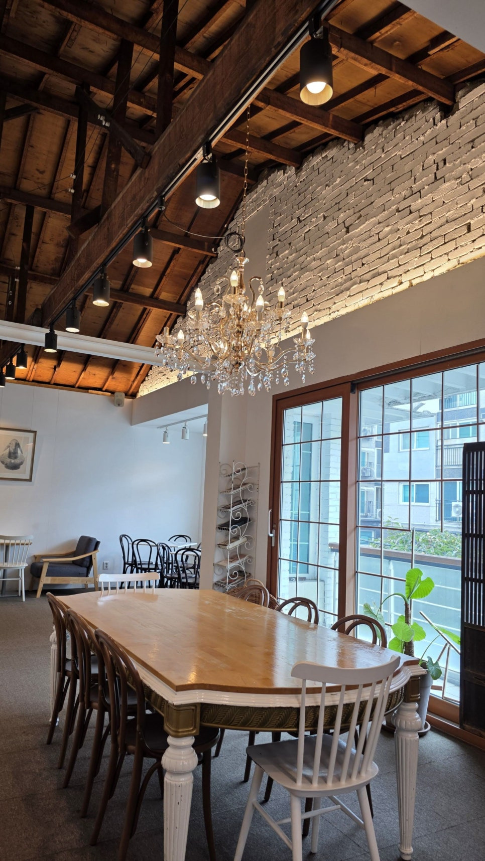 벽에 그림, 샹들리에, 앤틱 가구 포인트가 있어서 "오, 감성 있네" 싶은 공간이에요.