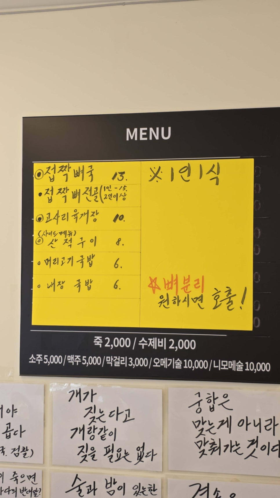 바로 접짝뼈국과 고사리육개장! 가격도 만 원 내외라 가성비까지 챙겼죠.