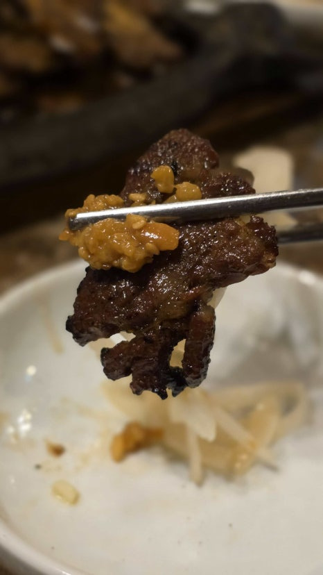참나무 백탄으로 초벌 해서 불향이 코끝을 싹 스치는데 감동 그 자체!