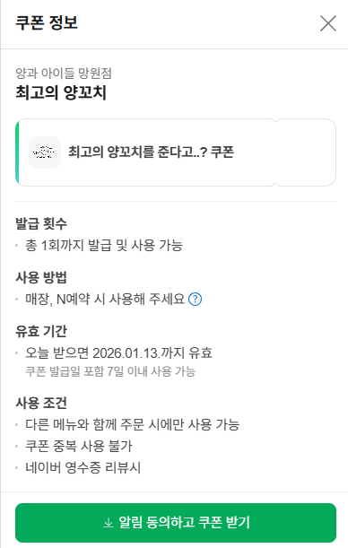 이건 참을 수 없죠!! 쿠폰 꼭 꼭 받아주시고, 네이버 리뷰까지 작성하면, 소스바까지 무료로 이용할 수 있어요!