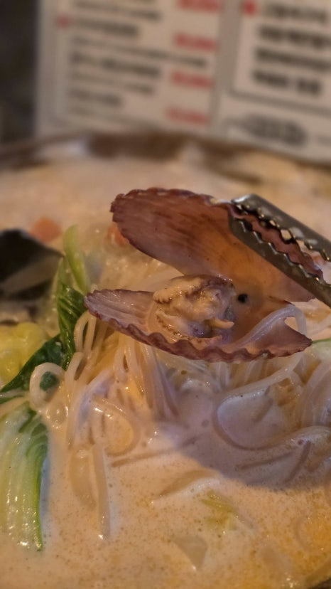 홍합, 조개, 새우가 듬뿍 들어있어 국물 맛이 깊고, 면이 기본으로 포함되어 식사 대용으로도 충분해요.