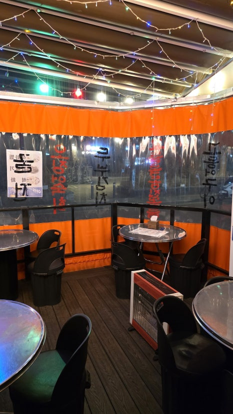 멀리서부터 반짝이는 알전구와 주황색 천막이 "나 포차야!"라고 외치는 듯한 비주얼 덕분에 금방 찾을 수 있었어요.